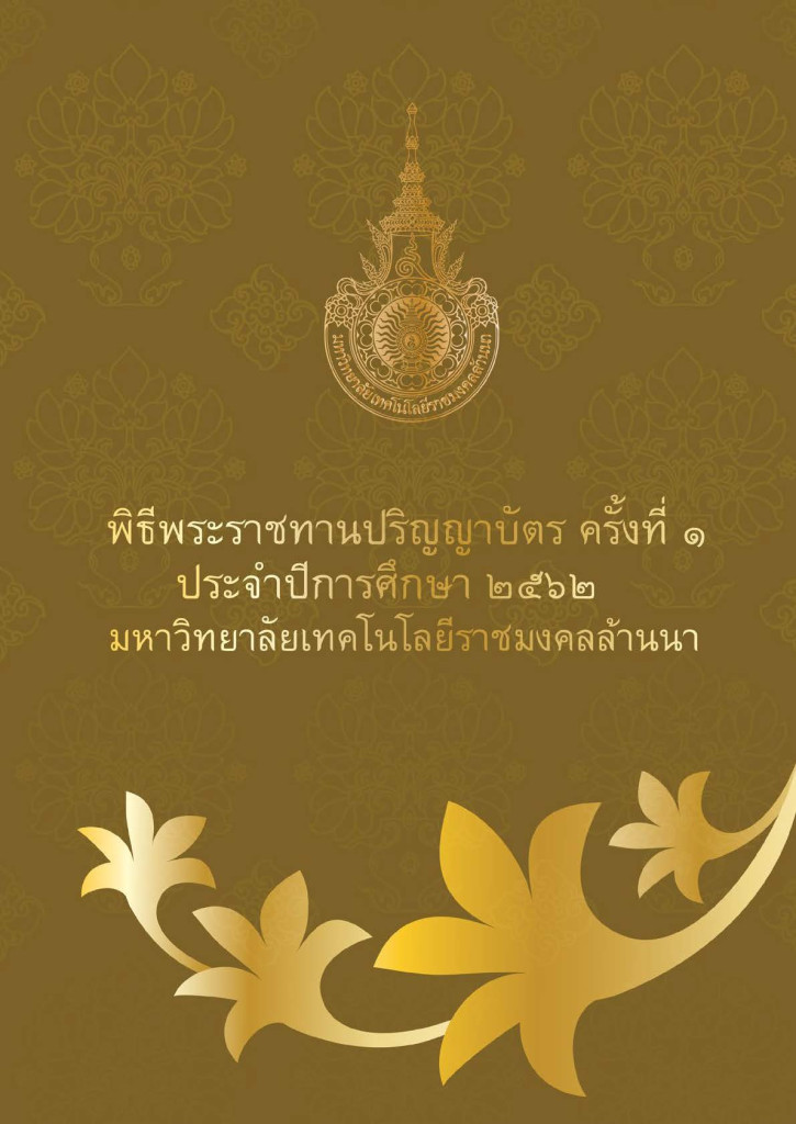 คู่มือ วารสาร สูจิบัตร พิธีพระราชทานปริญญาบัตร มหาวิทยาลัยเทคโนโลยีราชมงคลล้านนา ครั้งที่ 1 ปีการศึกษา 2562