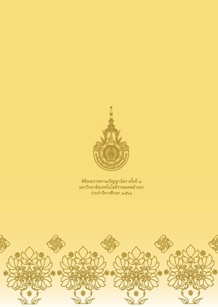คู่มือ วารสาร สูจิบัตร พิธีพระราชทานปริญญาบัตร มหาวิทยาลัยเทคโนโลยีราชมงคลล้านนา ครั้งที่ 4 ปีการศึกษา 2566